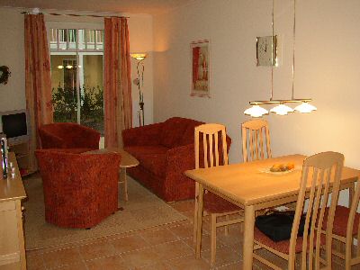 kostenlos. Die Wohnung ist gut für Senioren und Kinder geeignet und auch behindertenfreundlich, da sie sich im Erdgeschoss befindet. Das Mitbringen von Haustieren ist leider nicht gestattet. Es handelt sich um eine Nichtraucherwohnung! Im Haus stehen auch eine Waschmaschine und ein Fahrradkeller zur Verfügung. In der Anlage befindet sich eine Lounge (Bar/Cafe), in der auch Frühstück angeboten wird.